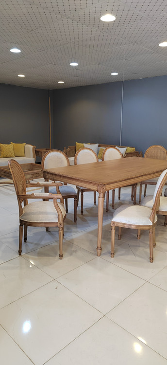 غذاخوری چهار نفره شش نفره هشت نفره موجود داریم ده نفره دوازده نفره سفارش ساخت انجام میشود جنس چوب راش گرجستان قابل تغییردر رنگ چوب پارچه همراه باضمانت