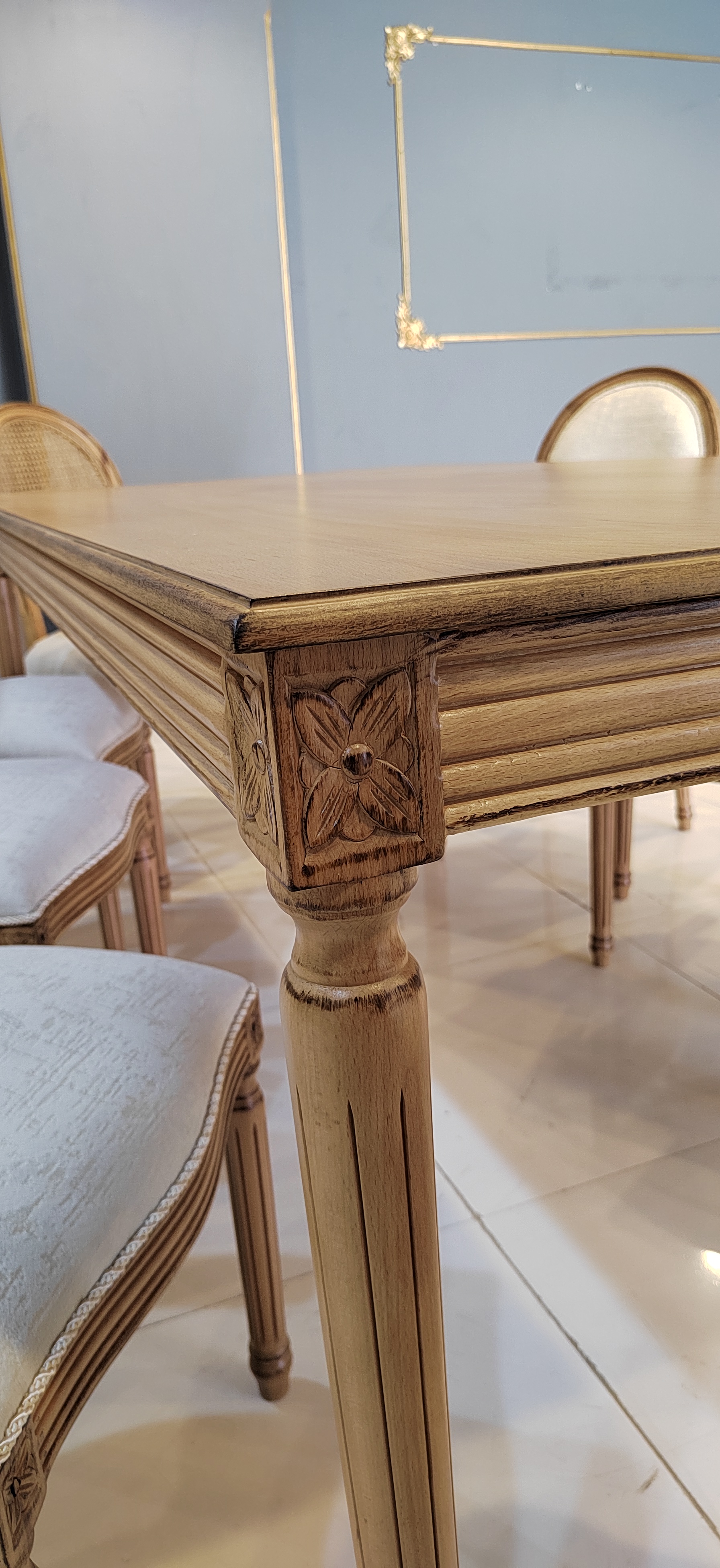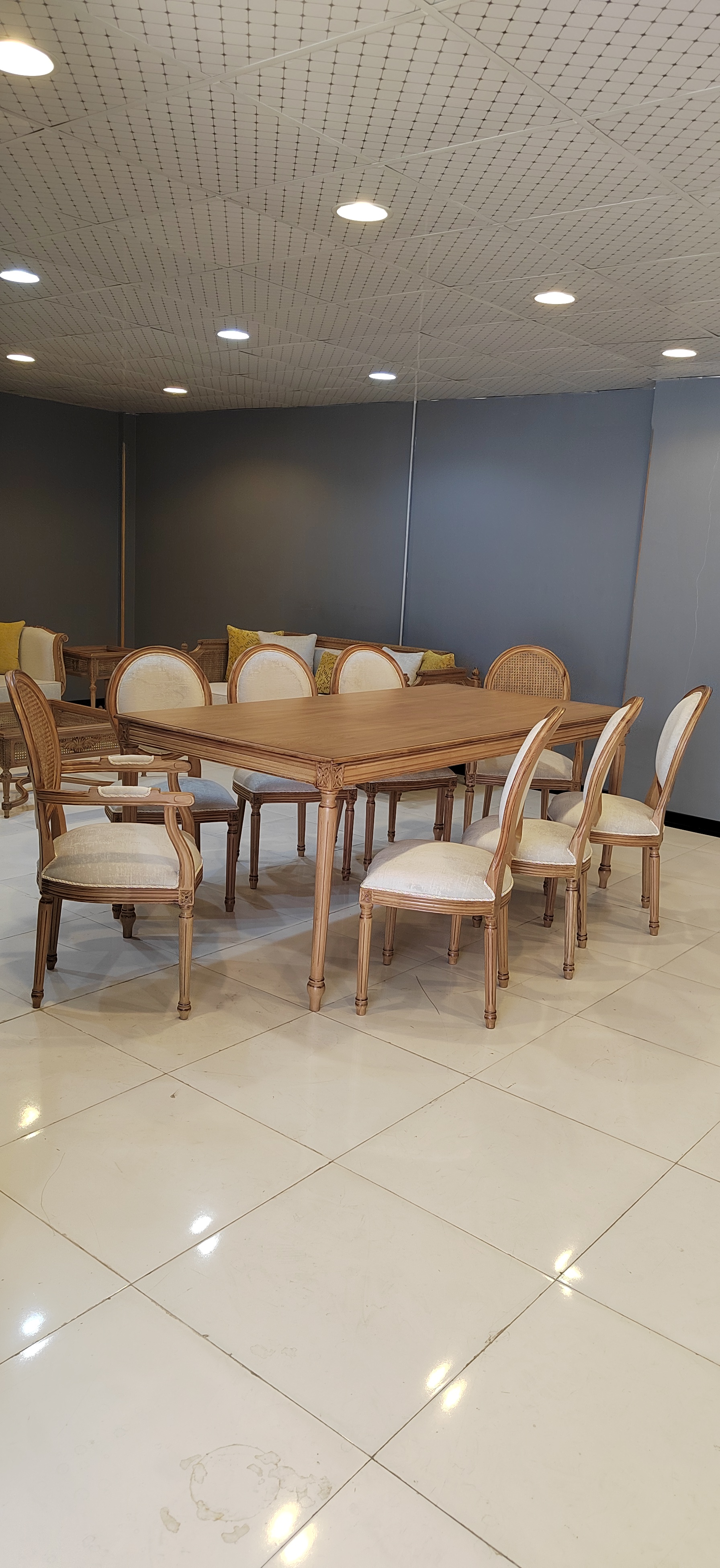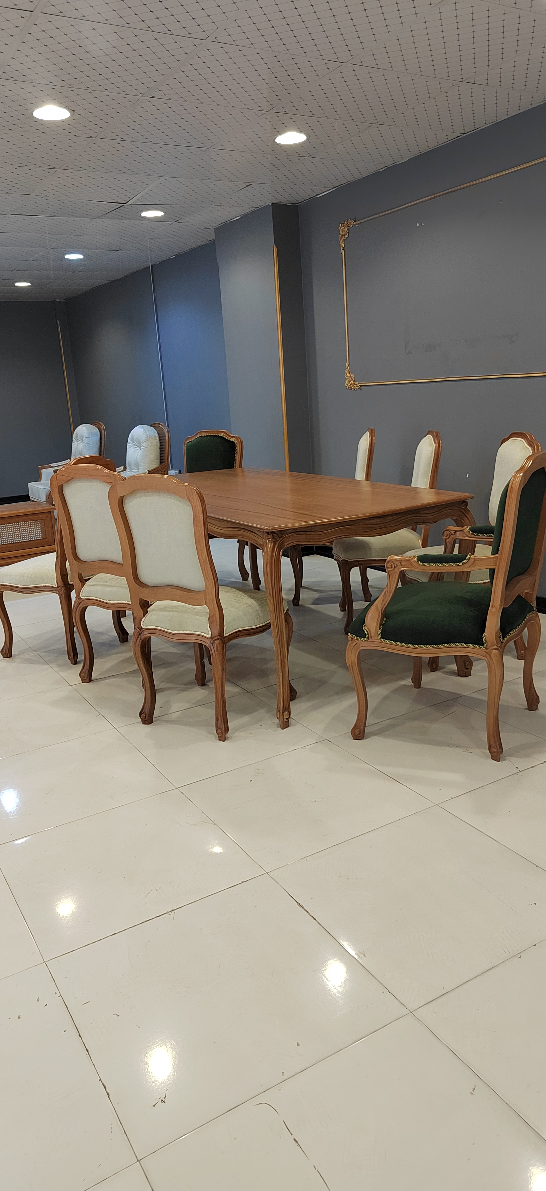 غذاخوری چهار نفره شش نفره هشت نفره موجود داریم ده نفره دوازده نفره سفارش ساخت انجام میشود جنس چوب راش گرجستان قابل تغییردر رنگ چوب پارچه همراه باضمانت